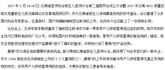 善萌®上市东风,催生云南新生儿救治新选择